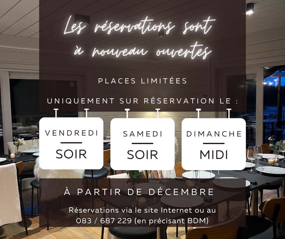 Infos et réservations 083 / 687 229 en mentionnant que vous désirez réserver au Bout du Monde